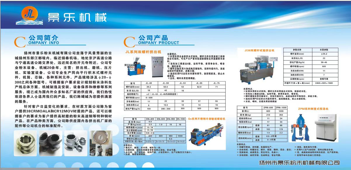 | 公司名(中文): | 扬州市景乐粉末机械有限公司 | |